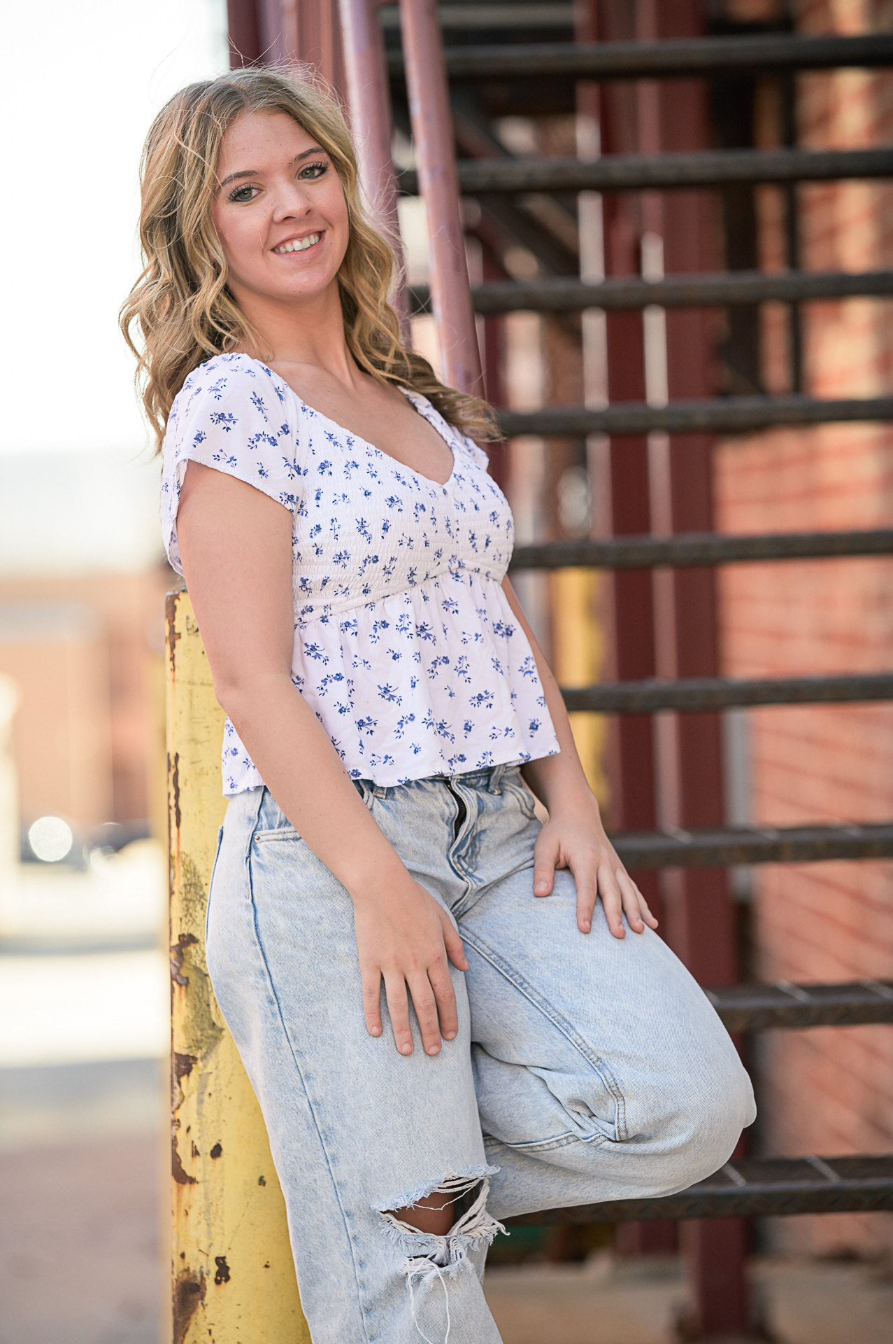 Urban stylHigh school graduation portrait photographer serving St. Joseph and Kansas City. Professional 85mm lens technique for high-end bokeh and authentic expressions in every portrait.e senior portrait session for high school graduates in Kansas City. Creative outdoor photography using natural light and professional posing in downtown environments.